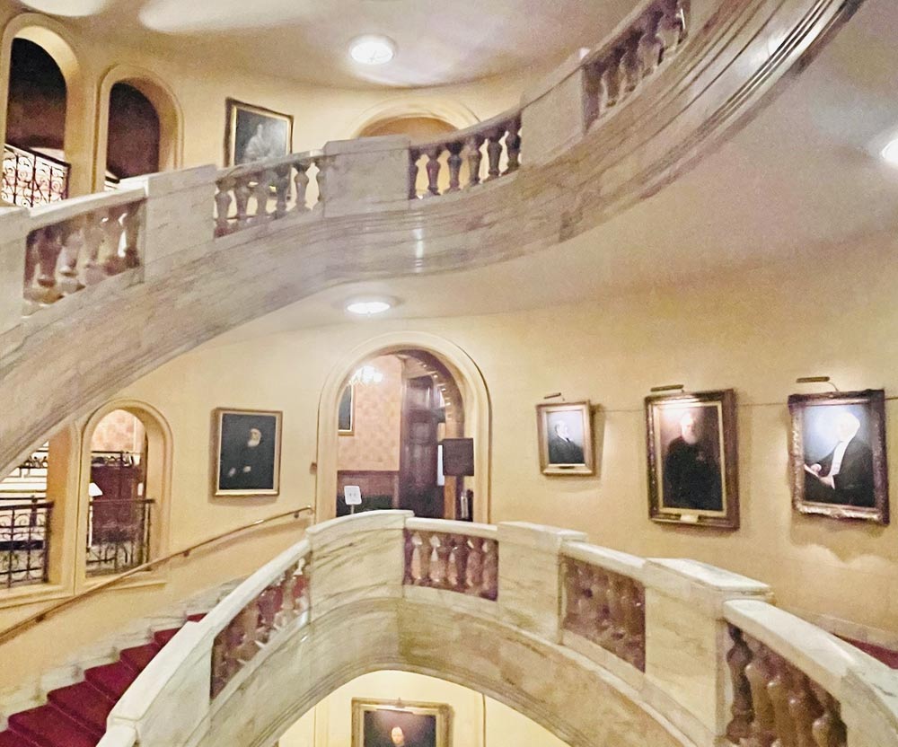 Walk into the National Liberal Club at 1 Whitehall Place and what do you see? No minimalism! The Grand Staircase sets the tone. Beyond lie reception rooms richly decorated in Classical and Gothic Revival styles, a warm and inviting venue for launching an architecture book.