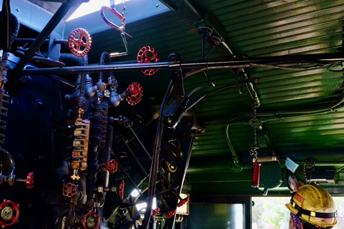 The Railgiants Train Museum have recently reinstated an interactive diagram of the Big Boy backhead on their website allowing you to hover over each dial, valve or control lever and read its name and function. What you see here is the cab as it was when the locomotive was coal fired. During its restoration and conversion to oil in 2016-19, the steam team moved a number of dials around and changed some of the valves to perform new functions. The grate and manifold are of course different. Nevertheless, the diagram has proved enormously popular and it is still a valuable introduction to the operation of a steam locomotive for anyone who has not driven one! To use the diagram, go to the Railgiants’ Interactive Backhead Photo.