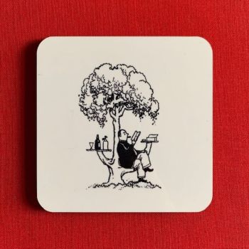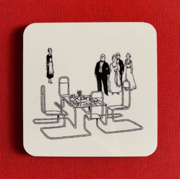 When you take a closer look at these coasters, you can spot all sorts of satirical touches. Heath Robinson couldn’t resist poking fun at social conventions. Whether eating, reading, relaxing or carousing, the characters in his drawings are all desperately seeking to make a good impression. As Philip Pullman says in his Foreword to Very Heath Robinson, ‘They don’t know they’re being ridiculous. They are convinced they’re being entirely rational and clever and up to date’. So, as you sip your coffee, you can laugh along with Heath Robinson.